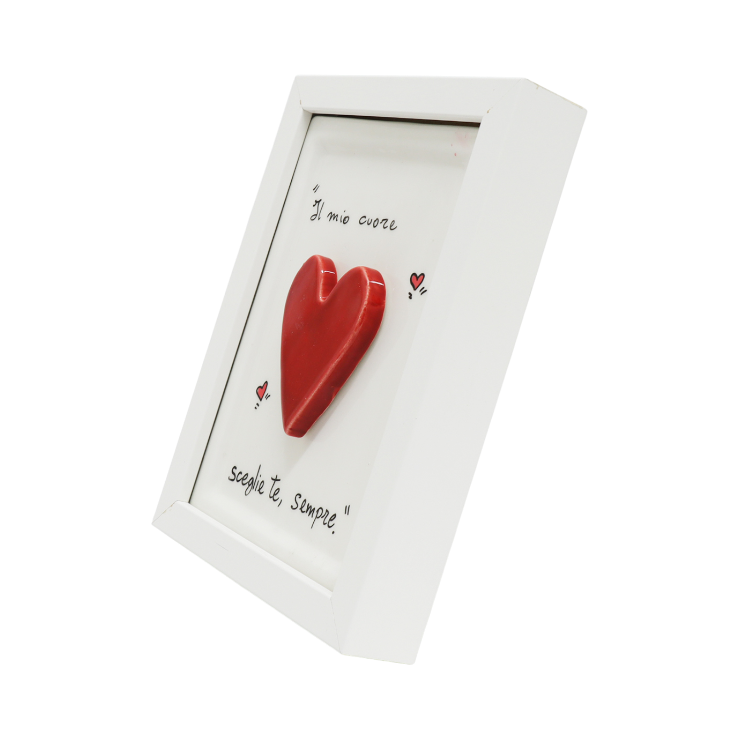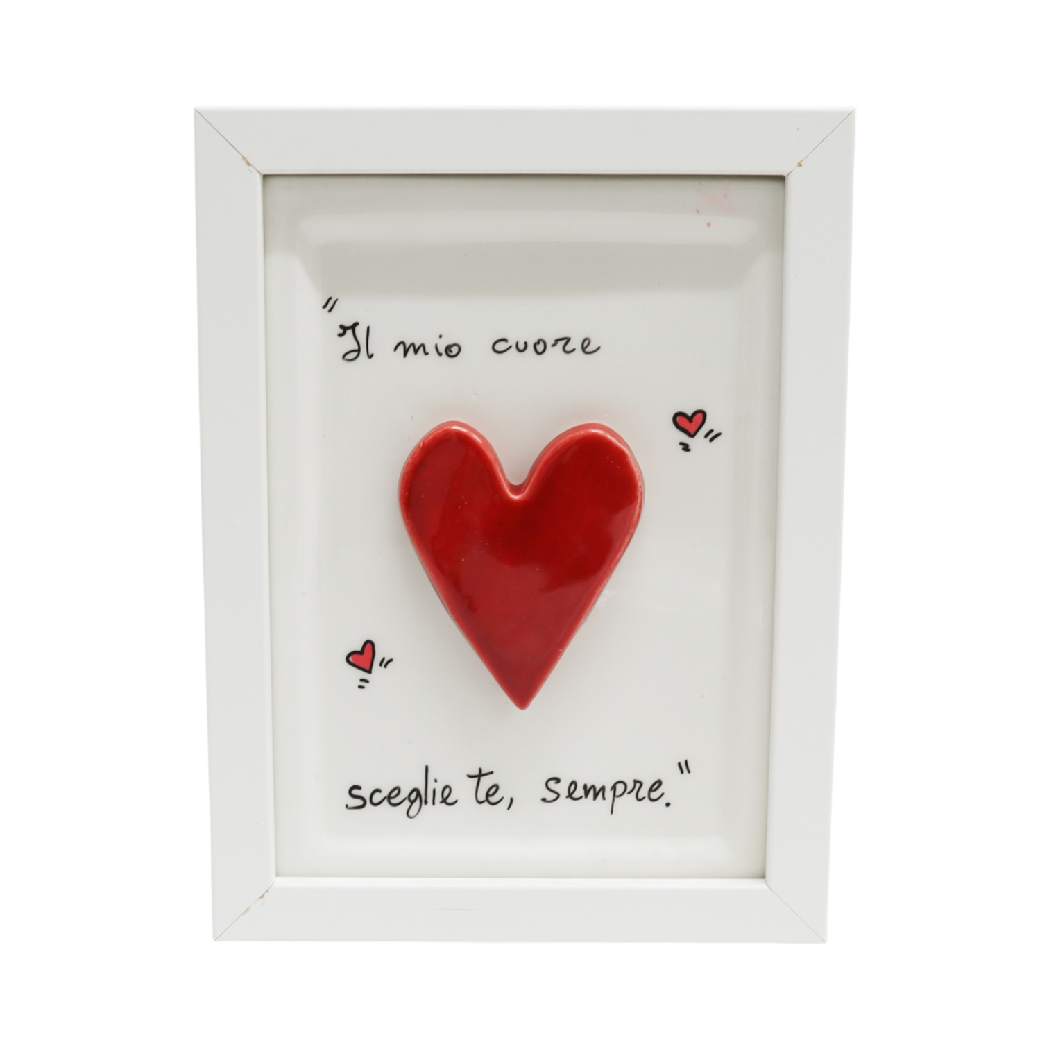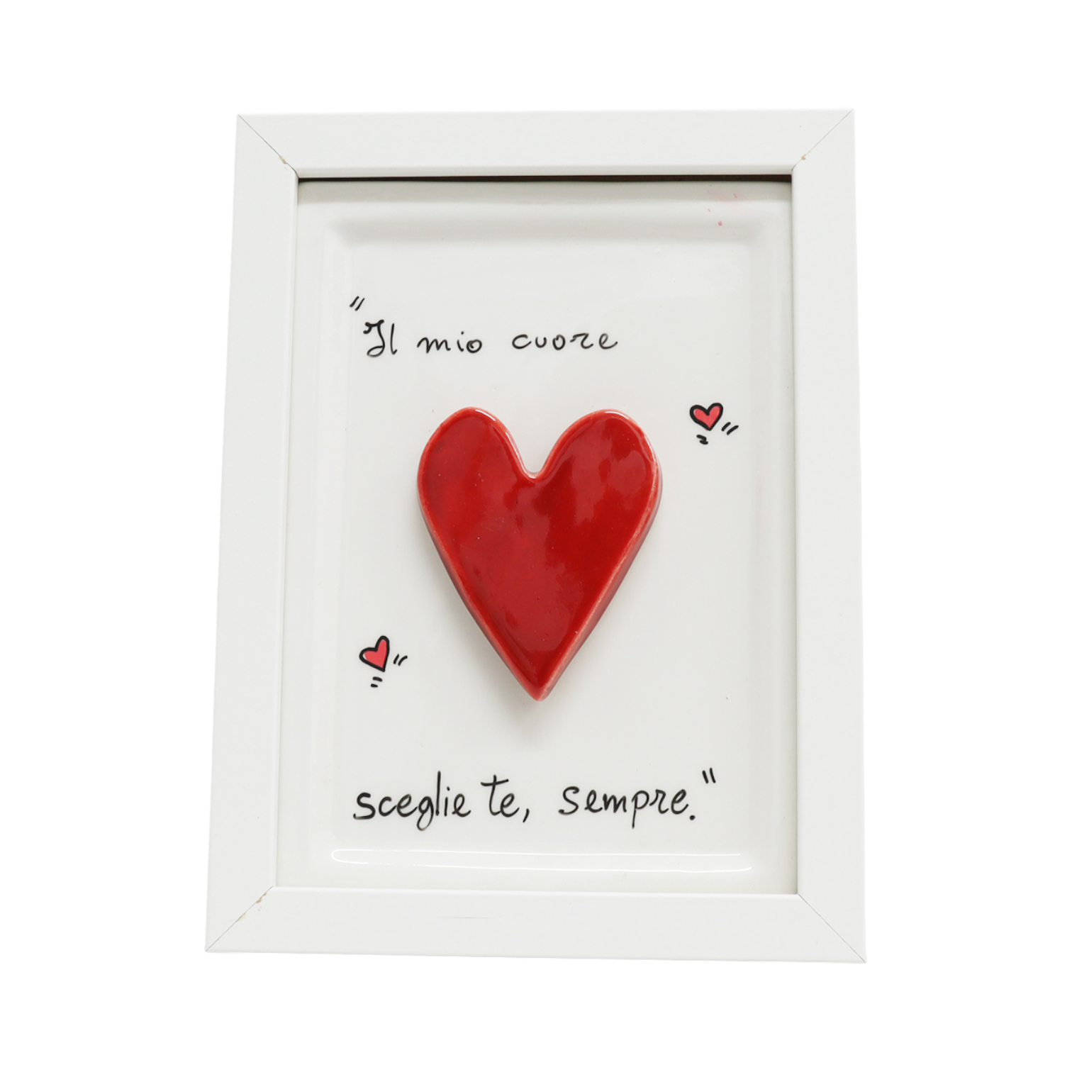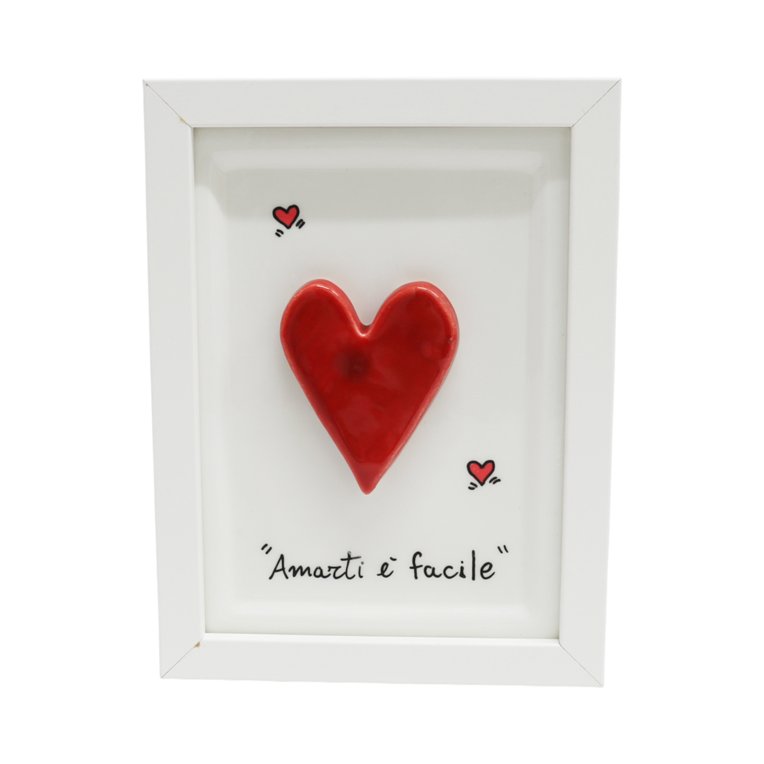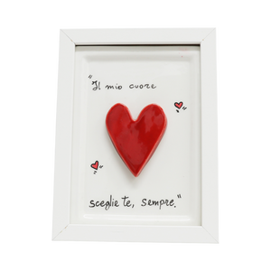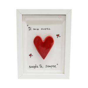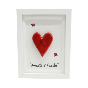 Donato dall’arte ceramica napoletana, il quadretto con cuore rosso Siniscalchi Ceramics è una raffinata decorazione realizzata interamente a mano in Italia. Questa piccola opera d’arte (11,5 cm di pura ceramica artigianale) racchiude passione e cura dei dettagli, regalando calore e personalità agli spazi di chi la riceve.
