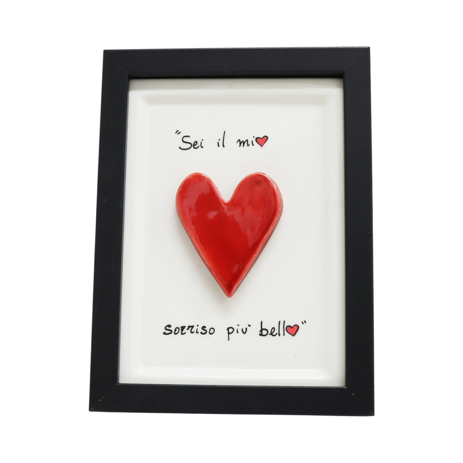 Donato dall’arte ceramica napoletana, il quadretto con cuore rosso Siniscalchi Ceramics è una raffinata decorazione realizzata interamente a mano in Italia. Questa piccola opera d’arte (11,5 cm di pura ceramica artigianale) racchiude passione e cura dei dettagli, regalando calore e personalità agli spazi di chi la riceve.