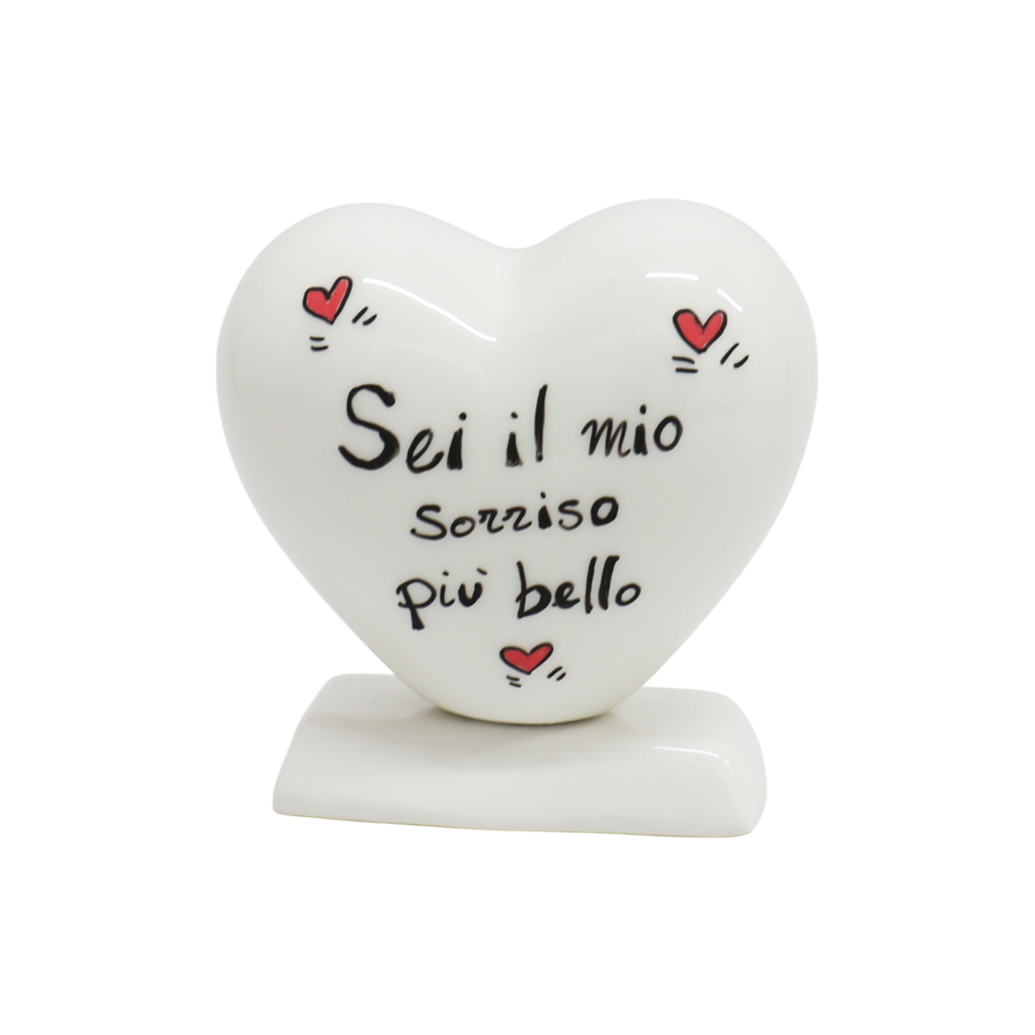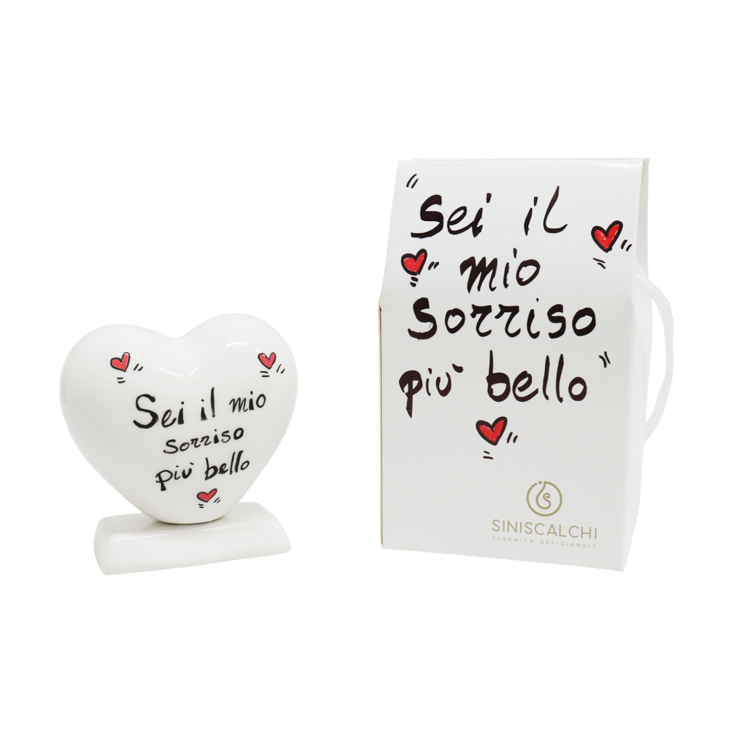 Cuore Bianco Personalizzato 10cm è una raffinata creazione in ceramica artigianale napoletana, perfetta per donare un messaggio di amore autentico in ogni occasione speciale. Realizzato interamente a mano in Italia, questo cuore rosso esprime passione e cura per i dettagli, incarnando la tradizione della ceramica di Napoli.